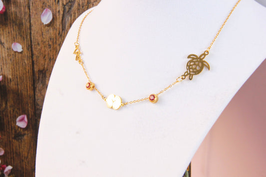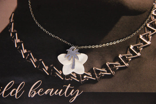 White Shell Flower Pendant Necklace with Palm Tree Charm